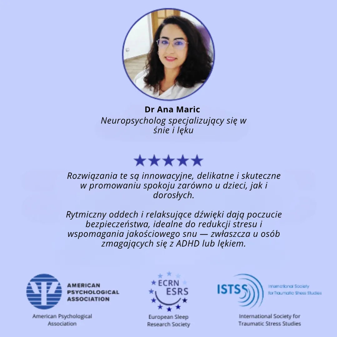 Naśladuje rytm oddechu i bicia serca dla natychmiastowego odprężenia.